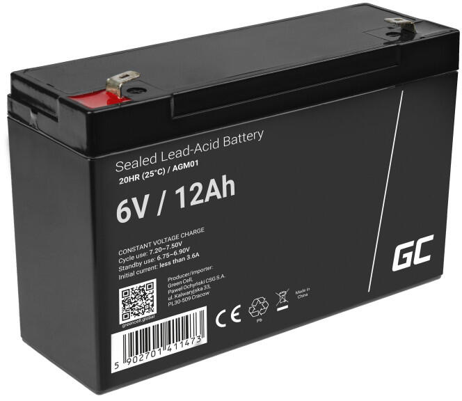 Green Cell 6V 12Ah Akkumulátor zárt, gondozásmentes AGM (AGM01) Alkalmazható a következő eszközökben - Riasztó - Biztonsági rendszer - Kábel tv - Kommunikációs berendezések - Orvosi felszerelés - UPS - Elektromos szerszámok - Vezérlő berendezések - Játékok