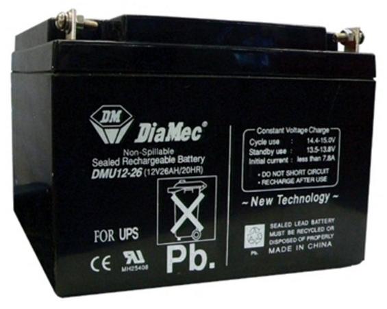 DIAMEC akkumulátor biztonságtechnikai rendszerekhez és elektromos játékokhoz, 12 V, 26,0 Ah, 175 x 166 x 126 mm, 8,2 kg, szünetmentes (UPS) és normál tápegységekhez. – Hosszú élettartam, jó dinamikus viselkedés, gondozásmentes, teljesen zárt.
