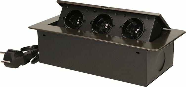 Három darab 2P+Z elektromos aljzatból álló készlet kihúzható felső fedélben. Asztalokba, asztallapokba és íróasztalokba történő belső beépítésre tervezve, függőleges és vízszintes helyzetben egyaránt, hozzáférést biztosítva az elektromos aljzatokhoz. Általános információk: ModellMagasság: 67 mmÖsszecsukható: IgenFiókszabvány: francia (E típus)Maximális terhel