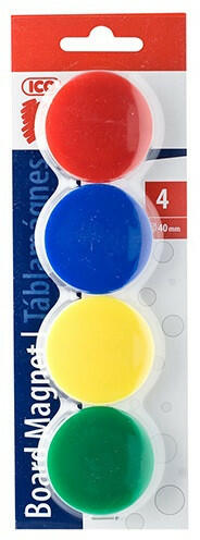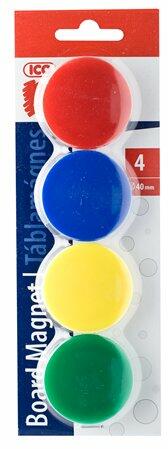 Táblamágnes ICO színes 40mm Táblamágnes, vegyes színek egy csomagban. Acél táblafelületeken rögzíthető mágnes korongok.