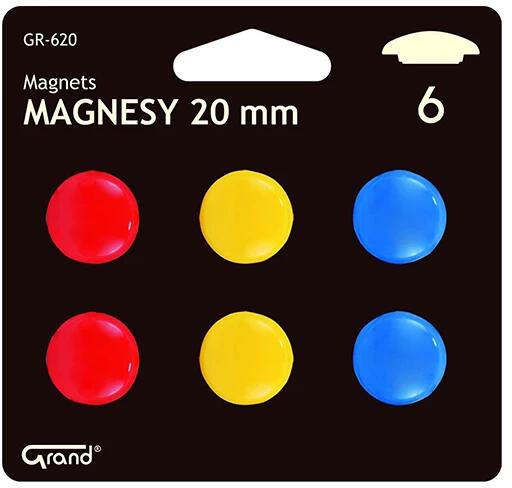 Tartós anyagból készült, szines mágnesek. Átmérő: 20mm
