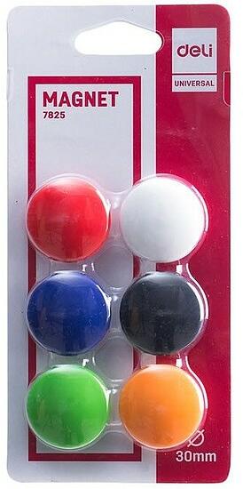 Mágneskorong, 30 mm, 6 db, DELI Universal, vegyes szín
