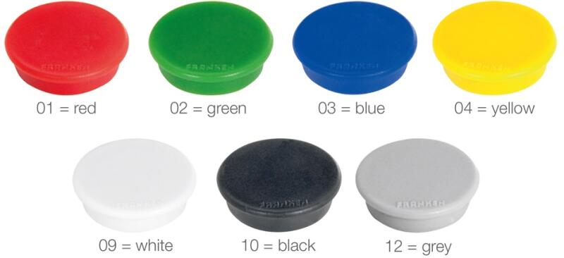 Alcsoport mágnes Mágnes színe piros és árnyalatai Erős mágnes korongok üzenetek, emlékeztetők biztos rögzítéséhez mágneses táblákon vagy a hűtőszekrényen. Üvegtáblához nem javasolt 38 mm-es átmérőjű korong formájú színes mágnes max. 20 db 80g-os A4 lap rögzítéséhez piros 10 db / csomag