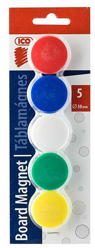 Különbözô színű és méretű kerek, jó minôségű, erôs mágnes, fém illetve fehér táblákhoz. Iskolákban oktatás során, prezentációkon kiváló segítôtárs. Bliszteres csomagolásban, a következô méretekben: 15, 20, 30 és 40 mm Márka:Ico title:táblamágnes - mágnes - irodai használatra is description:Különböző mérető és formájú mágnest rendeled meg tőlünk. p