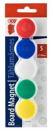 Táblamágnes ICO színes 30mm Táblamágnes, vegyes színek egy csomagban. Acél táblafelületeken rögzíthető mágnes korongok.