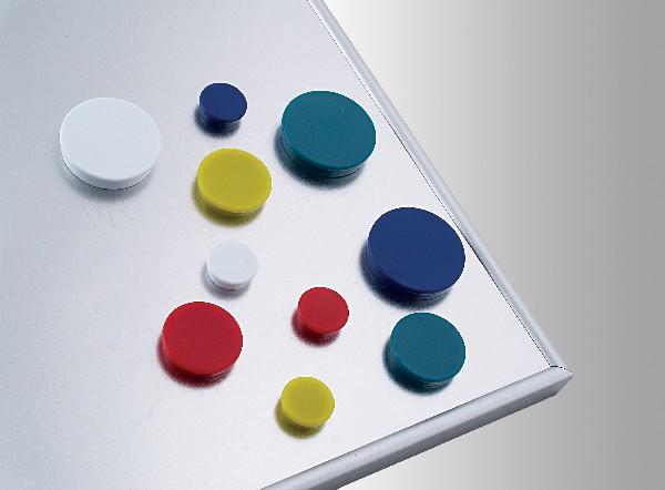 Dokumentumok mágneses felületeken való megjelenítéséhez. Kiváló minõségű mágnesek a lakozott felületnek köszönhetõen nem karcolják a mágnesezhetõ felületeket. Erõsség: 300 g. 10 db / csomag 7 vegyes szín. (Piros, zöld, kék, sárga, fehér, fekete, szürke)