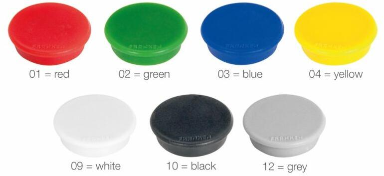 A 40 mm átmérőjű kerek és színes mágnesek ideális kiegészítői minden mágneses táblának. kiegészítő mágneses táblához színes (a 16-os átmérőjű csak feketében) átmérő: 40 mm darabszám a csomagban: 4 db