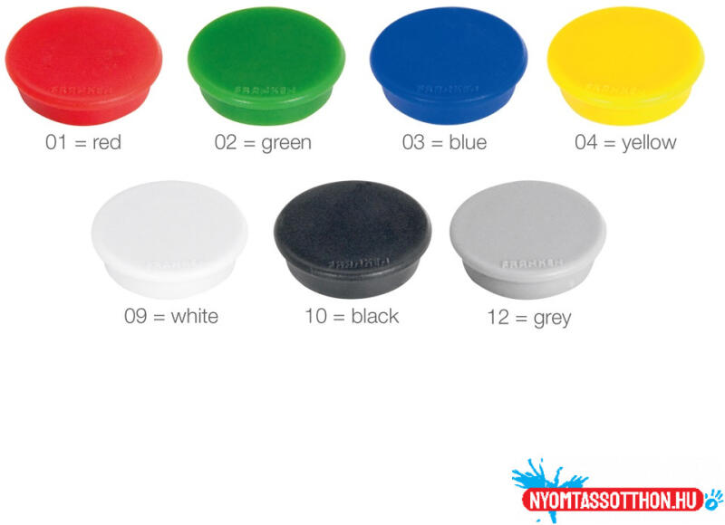 Mágnes 24mm, 10 db/csomag, Franken fehér Dokumentumok mágneses felületeken való megjelenítéséhez. Kiváló minőségű mágnesek a lakozott felületnek köszönhetően nem karcolják a mágnesezhető felületeket. Erősség: 300 g. 10 db / csomag