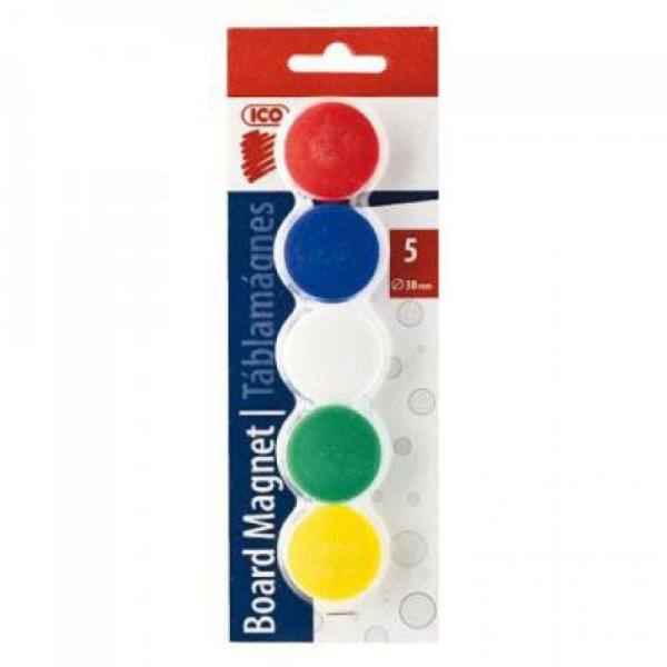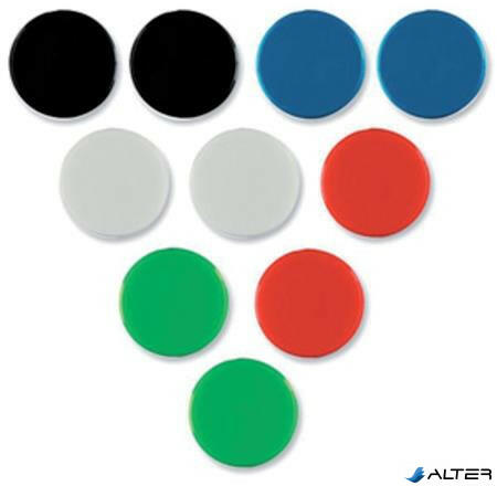 Különböző színű, kerek, praktikus, jó minőségű, erős mágnes, fém-, ill. fehér táblákhoz. Iskolákban oktatás során, prezentációkon kiváló segítőtárs. Átmérő: 30 mm 5 db/csomag Csomagolása bliszteres. .