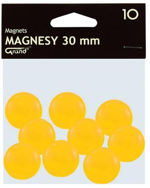 Erős mágnes korongok üzenetek, emlékeztetők biztos rögzítéséhez mágneses táblákon vagy a hűtőszekrényen. Üvegtáblához nem javasolt 38 mm-es átmérőjű korong formájú színes mágnes max. 20 db 80g-os A4 lap rögzítéséhez sárga 10 db / csomag