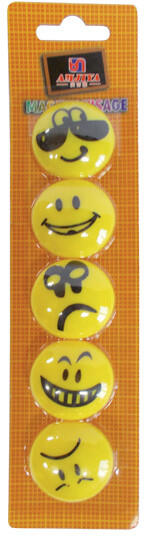 Irodai kellékanyagok, amik nélkülözhetetlenek a profi, mindennapi munkavégzéshez. Smile táblamágnes, sárga, 3,5 cm, 5 db/bliszter. Táblamágnes készlet smile mintával. Praktikus segítség vidám prezentációkhoz, papírlapok rögzítéséhez mágnestáblákon. 3,5 cm átmérő.