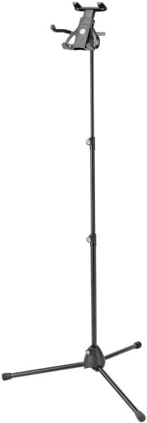 Színpadi állvány különböző típusú táblagépekhez, amely lehetővé teszi a biztonságos rögzítéat. Az állvány alkalmas színpadra vagy stúdióba, és két állító csavarnak köszönhetően az állvány függőlegesen 650 és 1500 mm között helyezhető el. Kompatibilis az iPad mini, iPad, iPad, iPad, Amazon Kindle, Amazon Fire, Samsung Galaxy Tab, Google Nexus, Asus Transformer