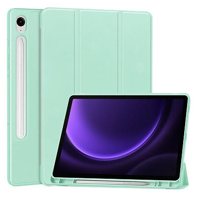 Triple Folding bőrhatású támasztós fliptok, stylus kivágással Samsung X510, X516, X710, X716 Galaxy Tab S9 FE, Tab S9 5G, világoszöld
