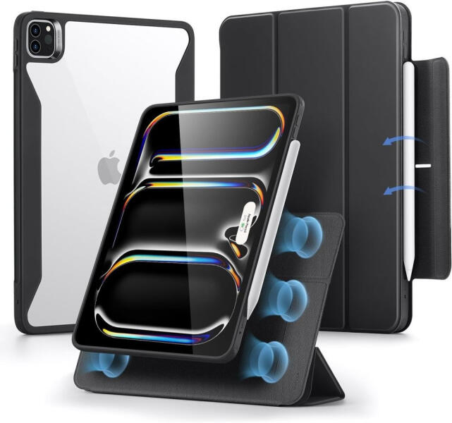 ESR REBOUND HIBRID smart tok IPAD PRO 11 5/2024, fekete Fedezze fel a stílus, a funkcionalitás és a védelem tökéletes kombinációját az ESR Rebound Hybrid tokkal. Ez egy könnyű és vékony tok, amely nem csak robusztus védelmet nyújt az iPadnek, hanem új funkciókat is kínál a mágneses hátlappal és az innovatív, praktikus állvánnyá alakítható patenttal. A kompromisszumok n