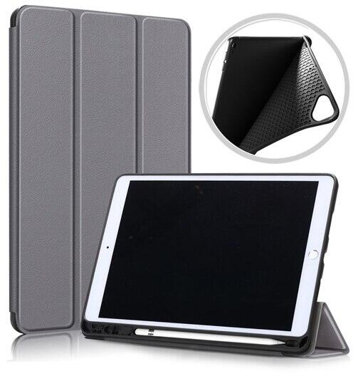Gigapack Bőr hatású tok, Apple iPad 10.2 (2019), álló, aktív flip, oldalra nyíló, TRIFOLD asztali tartó funkció, Szürke Kompatibilitás Apple IPAD 10.2 (2019)