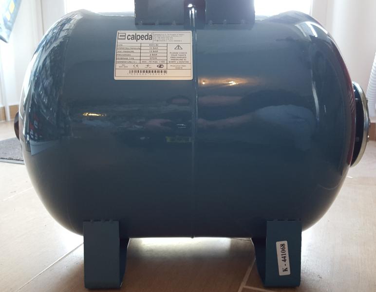 Alkalmazás A CALPEDA SMH 80/10 80 literes fekvő hidrofor tartály, cserélhető gumimembránnal. Használható hidrofor rendszerekben nyomástartó tartályként. A rendszerben uralkodó nyomás stabilizálására szolgál, valamint a benne tárolt víz csökkenti a szivattyú üzemelésének számát, amely a szivattyú élettartamának növekedéséhez vezet. Minél nagyobb a tartály, annál