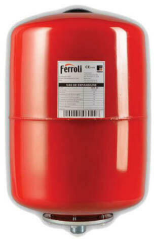 Ferroli VFN 12 függőleges tágulási tartály, 12 liter, max 10 bar A VFN függőleges tágulási tartályok, amelyek legfeljebb 10 bar nyomáson működnek. Jellemzők:alkalmas fűtési, hűtési, ivóvíz- és napelemes alkalmazásokhozteljesen hegesztett karosszériakiváló minőségű cserélhető gumimembrán a DIN 4807-3 szabvány szerintkompatibilis az EK 97/23/EK nyomástartó edényekr