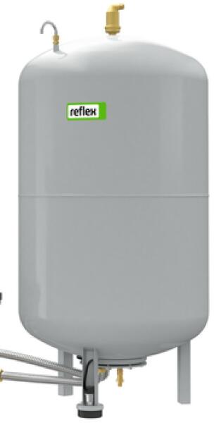 Zárt tágulási tartály, Fűtő és hűtő alkalmazásokhoz, Űrtartalom: 300 l Műszaki adatok: Űrtartalom: 300 l Magasság: 1360 mm Átmérő: 634 mm Súly: 52,2 kg Reflex Variomat tartály Kívülről festett acéltartály A 'VG' alaptartály szintérzékelővel együtt szállítva Cserélhető Butyl-membránnal a nyomástartó edényekről szóló 97/23/EG szerinti kivitel Szivattyús nyom