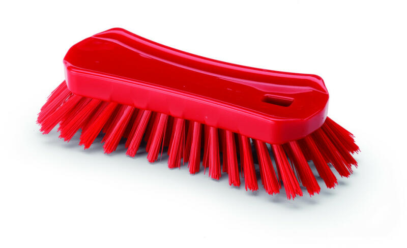 - kézi súroló kefe - ergonómikus - piros sörtéjű - HACCP rendszerbe illeszthető - többcélú felhasználásra alkalmas az élelmiszeriparban: tartályok, konténerek, munkaasztalok, vágódeszkák, és gépalkatrészek tisztítására - vastag sörtével (0.75 mm) - 35 mm-es sörtehossz - 230x100x55 mm