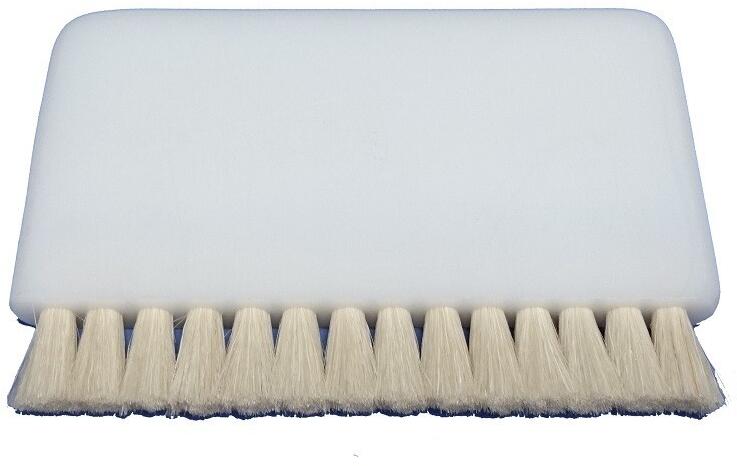 Kecskeszőr kefe a tisztítófolyadék terítésére a hanglemezen. Fekete vagy fehér színű, tartós műanyag markolattal.