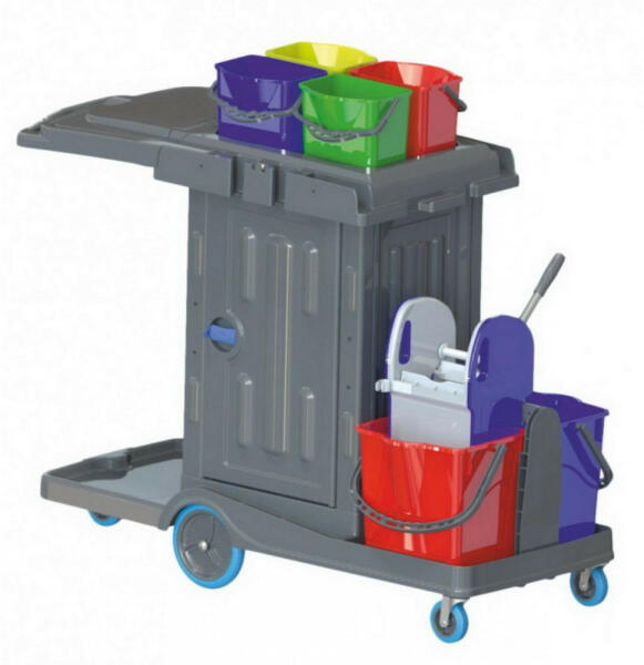Hercules Classic takarító kocsi zárható, Préssel, 2x18L + 4x5L vödörrel, - Hercules Classic takarítókocsi - Préssel, 2x18L + 4x5L vödörrel - eszköztárolóval, zsáktartóval, műanyag vázas - zárható