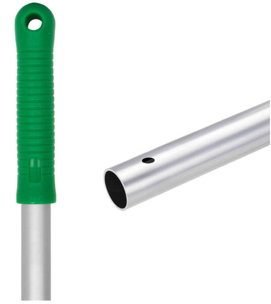 Alumínium felmosónyél csiszolt eloxált zöld 23x140cm - alumínium nyél - csiszolt - mérete 140 cm x 2,3 cm - 1 mm vastag anyagból - zöld színű markolattal - lapos felmosó talphoz, csavarós felmosó fejhez, padlólehúzóhoz, illetve a legtöbb szorítós csatlakozású eszközzel kompatibilis - 265 gr - 48 db / karton