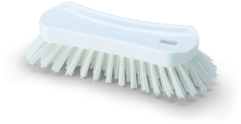 - kézi súroló kefe - ergonómikus - fehér sörtéjű - HACCP rendszerbe illeszthető - többcélú felhasználásra alkalmas az élelmiszeriparban: tartályok, konténerek, munkaasztalok, vágódeszkák, és gépalkatrészek tisztítására - vastag sörtével (0.75 mm) - 35 mm-es sörtehossz - 230x100x55 mm