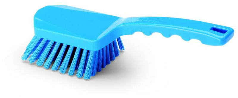 - kézi higiéniai kefe - rövid nyéllel - kék sörtéjű - HACCP rendszerbe illeszthető - többcélú tisztító kefe, mely főzési terültetek, élelmiszeripari gépek és berendezések, illetve satupadok tisztítására alkalmas - vastag sörtével (0.75 mm) - 40 mm-es sörte hossz - 130 °C -ig hőálló - 260x105x95 mm