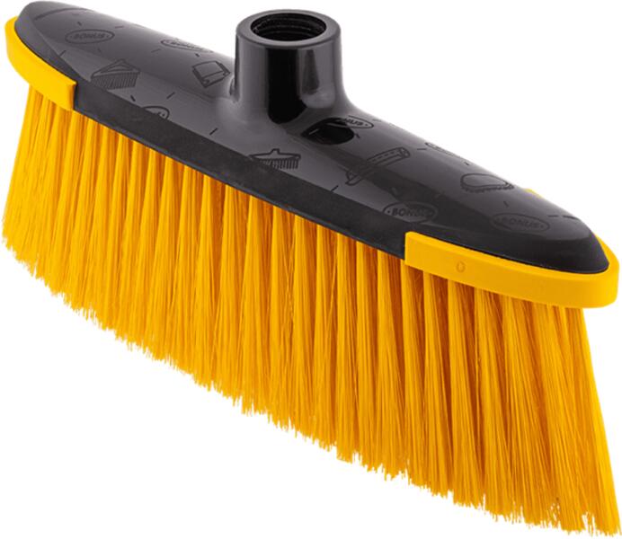 Sima felületekre tervezett beltéri seprű, a hagyományos cirokseprűk kiváló alternatívája, használható fapadlón, parkettán, és csempén. Precízen megfogja a port, a szennyeződéseket és a törmeléket. -anyaga: 100% újrahasznosított műanyag -szálak hossza: 12 cm -szálak színe: sárga -kompatibilis nyél: KHT1126, KHT1127, KHT983
