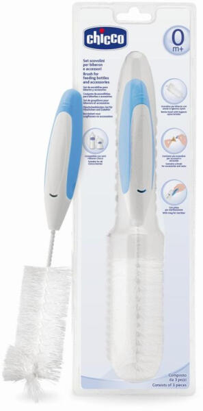 Cumisüveg, -és cumimosó kefe, ami fogóvá alakítható: üvegmosókefe cumimosó kefe kifogó csipesz fertőtlenítéskor Kifogó csipesszé alakítás: Ha levesszük a hosszú szárról a cumisüvegmosó kefét és a cumimosó kiskefét, akkor a termék maradék része a sterilizált termékek megfogására lesz alkalmas. Pl. hideg fertőtlenítő oldaltból kivenni a termékeket, vagy a forr