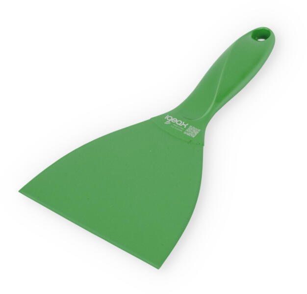 Egyrészes polipropilén kaparó puha élelmiszerek feldolgozásához és a felületek gyengéd tisztításához. Ergonomikus fogantyú nagy cseppálló lyukkal a megfelelő tárolás érdekében. Az innovatív jelölés nyomon követhetőséget tesz lehetővé a teljes ellátási lánc mentén. - kézi kaparó 110 mm - zöld - HACCP rendszerbe illeszthető - 100°C -ig hőálló - autoklávozhat