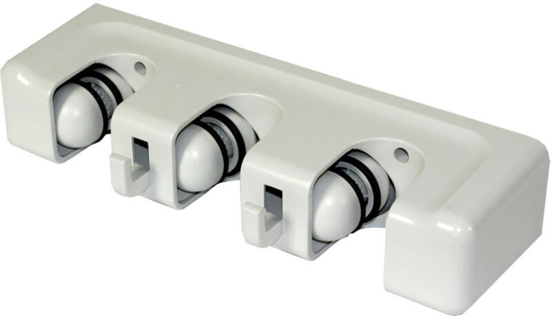 praktikus fali szerelésű akasztókkal is ellátott 3 db-os takarítóeszköz tartó seprű, lapát, felmosónyél... részére. Az eszköztartó felszerelhető a falra, a takarítószertárba, illetve akár egy szekrény ajtajára is... Az eszköztartóhoz 4db tipli, illetve csavar is tartozék. Az eszköztartót 4 ponton kell rögzíteni. Az eszköztartó szélessége: 28,5cm, magassága 6cm, a