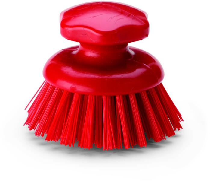 Igeax kézi ergonomikus súroló kefe kör alakú piros, közepes - ergonómikus - piros sörtéjű - HACCP rendszerbe illeszthető - közepes sörte vastagság (0.5 mm)