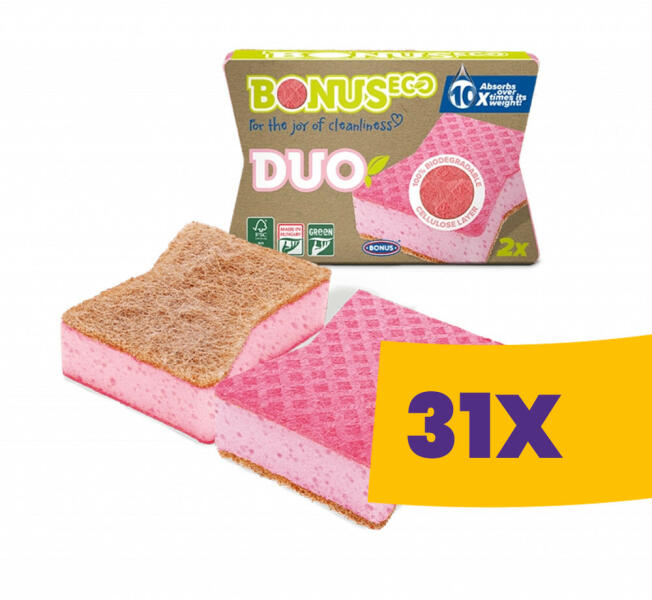 A BONUS+ DUO karcmentes mosogatószivacs tökéletesen ötvözi a dörzsi és a szivacsos kendő előnyeit. Elegáns megjelenésénél már csak a hatékonysága nagyobb ennek a divatos mosogatószivacsnak, melynek titka, hogy két oldalán két különböző tisztítófelület található. Végre fellélegezhetünk, nem kell takarítás közben folyamatosan különböző szivacsokat magunknál ta