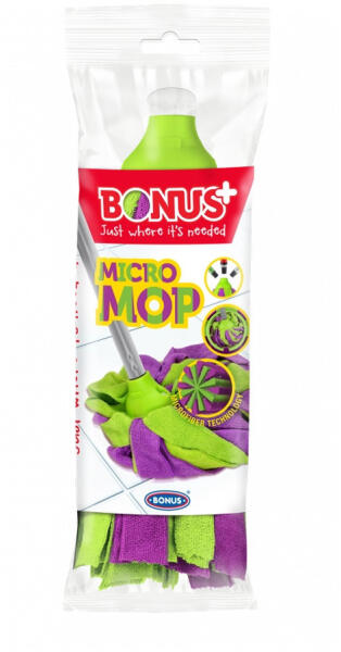 A BONUS+ MicroMOP a leghatékonyabb nedvszívással rendelkező felmosófej sima padlófelületekhez. A padlómosás során az egyik legnagyobb kihívás, hogy a koszt valóban fel tudjuk szedni és megakadályozzuk a piszok ide-oda tologatását. Nem elég csak simogatni a padlót, egy igazán jó felmosófej képes arra, hogy valóban felveszi a szennyeződéseket. A MicroMOP képes erre, mégho