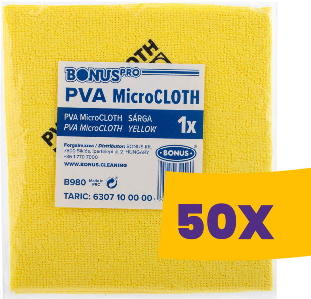 A Bonus PVA mikroszálas kendő két nem mindennapi anyag, a mikroszál és a PVA (polivinil-alkohol) kombinációja, amely egy vízoldható polimer. Különleges tulajdonsága, hogy megszáradva keménnyé válik, így elpusztulnak benne a kórokozók, ebből kifolyólag csak nedvesen érdemes használni. Összetételéből adódóan nagyon magas tisztítási teljesítménnyel rendelkezik, így j