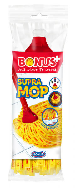 - Bonus Supramop felmosófej - 100 g - sárga színű - nonwoven (szövés nélküli) textiltechnológia - viszkóz belső - kiváló nedvszívás - minden felületre megfelelő - 40% poliészter, 60% viszkóz