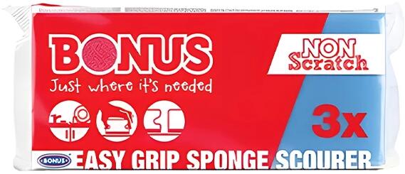 A három darabos kiszerelésű Bonus Formázott mosogatószivaccsal erős, de mégis kíméletes súrolóhatás érhető el mosogatás közben vagy bármely más háztartási felület tisztítása során. A karcmentes dörzsiréteg nem sérti fel az érzékeny felületeket, így lehetővé teszi mindenféle felület tisztítását. Használat közben a szivacs oldalain elhelyezett vájatok kényel