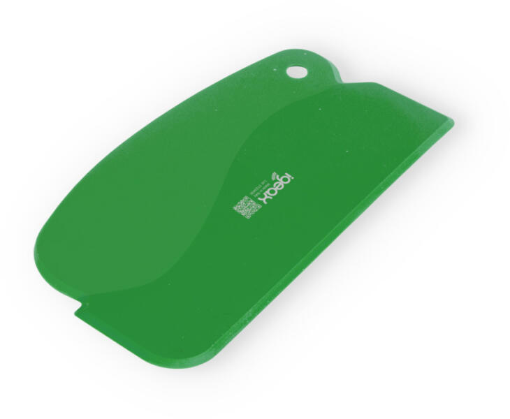 Rugalmas polipropilén kaparó puha élelmiszerek feldolgozásához, valamint a tetejek, élek és lekerekített felületek tisztításához. Nagy csepegésgátló lyukkal felszerelve a megfelelő tárolás érdekében és innovatív jelöléssel, amely lehetővé teszi a nyomon követhetőséget a teljes ellátási lánc mentén. - rugalmas kaparó 190 mm - zöld - HACCP rendszerbe illeszthető -