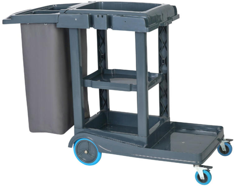 Herkules szállodai kocsi műanyag, textilzsákkal - szállodai kocsi - 100L-es gyűjtő textilzsák - tiszta ruha polcok - műanyag váz