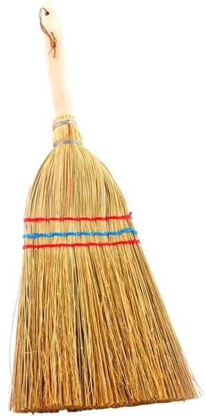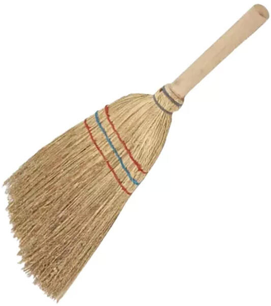 3 varrásos, kicsi cirokseprű, rövid fanyéllel.