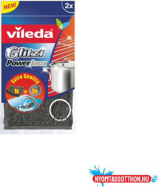 Súrolópárna inox 2 db/csomag Vileda Glitzi Power_F17202 A Vileda Glitzi Power Inox prémium súrolópárna rozsdamentes acélhurkai kíméletlenek az odaégett ételmaradékokkal. Fáradtság nélkül, csupán kis erőkifejtéssel könnyedén tisztaságot varázsolhat egy grillezés után is! A párna belsejében szivacs található, így a kíméletlen tisztítás mellett a kézre is tekintett