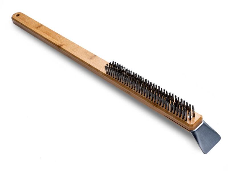 Az Ooni Pizza tisztító kefe 2 az 1-ben sütőlap kefe és kaparószerszám, kényelmes fából készült fogantyúval, valamint tartós rozsdamentes acél lehúzóval és sörtékkel. Tökéletes eszköz az Ooni pizza sütő főzés utáni hatékony és gyors tisztításához, a sörtékkel lekefélheti a felesleges lisztet, majd felfordítva lekaparhatja a lehullott ételmaradékot.