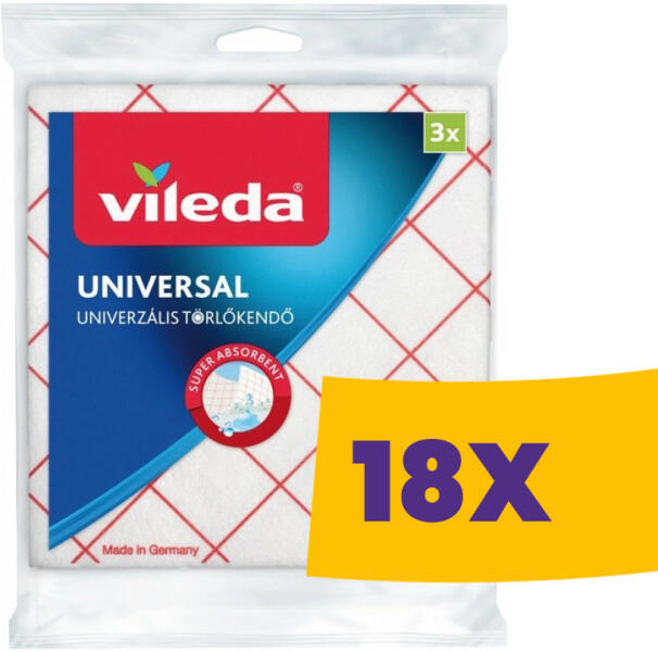 A Vileda Univerzális törlőkendő egy puha, általános törlőkendő nedves használatra, mely nemcsak a konyhában, hanem a fürdőszobában is kiválóan alkalmazható. - kiváló minőségű rostkeverékből készült - erős nedvszívóképesség - extra puha anyag - méret: 34x36 cm - szín: fehér/piros - kiszerelés: 3 db/csomag