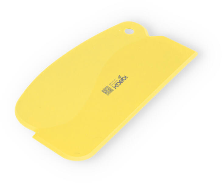 Rugalmas polipropilén kaparó puha élelmiszerek feldolgozásához, valamint a tetejek, élek és lekerekített felületek tisztításához. Nagy csepegésgátló lyukkal felszerelve a megfelelő tárolás érdekében és innovatív jelöléssel, amely lehetővé teszi a nyomon követhetőséget a teljes ellátási lánc mentén. - rugalmas kaparó 190 mm - sárga - HACCP rendszerbe illeszthető