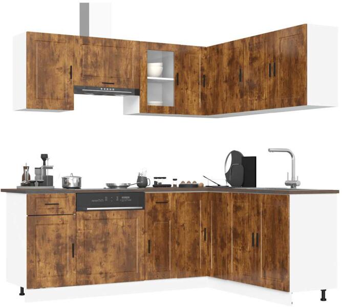 Ez az elegáns kialakítású, tizenegy részes konyhai szekrénygarnitúra optimalizálja konyhája terét, és bőséges tárolóhelyet biztosít személyes tárgyainak! Stabil és tartós anyag: A szerelt fa tartós és stabil anyag sima felülettel, amely ellenáll a nedvességnek, a vetemedésnek és a hasadásnak, így megbízható választás különféle célokhoz. Bőséges tárolóhely: