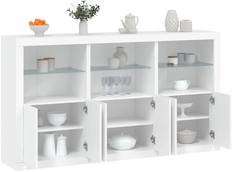 Díszítse fel szobáját ezzel a modern, LED-es lámpákkal felszerelt tálalószekrénnyel, mely könnyedén beleolvad otthona bármely stílusához. Tartós anyag: A szerelt fa kivételes minőségű, sima felületű, szilárd, stabil, és ellenáll a nedvességnek. RGB LED-világítás: A tálalószekrény élénk RGB LED-világítással lett felszerelve. A sokféle testre szabható menü seg