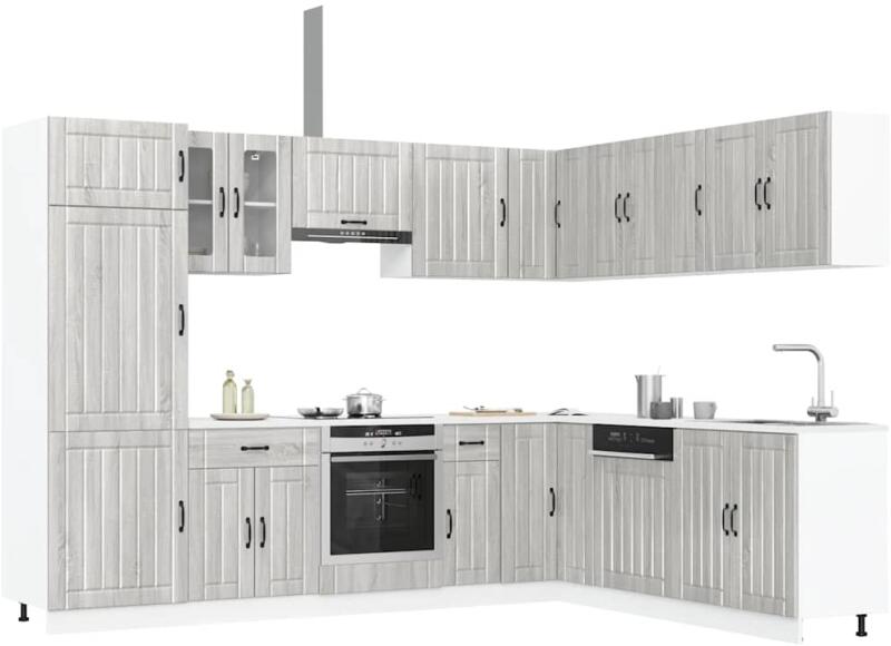 Ez az elegáns kialakítású, tizennégy részes konyhai szekrénygarnitúra optimalizálja konyhája terét, és bőséges tárolóhelyet biztosít személyes tárgyainak! Stabil és tartós anyag: A szerelt fa tartós és stabil anyag sima felülettel, amely ellenáll a nedvességnek, a vetemedésnek és a hasadásnak, így megbízható választás különféle célokhoz. Bőséges tárolóhely