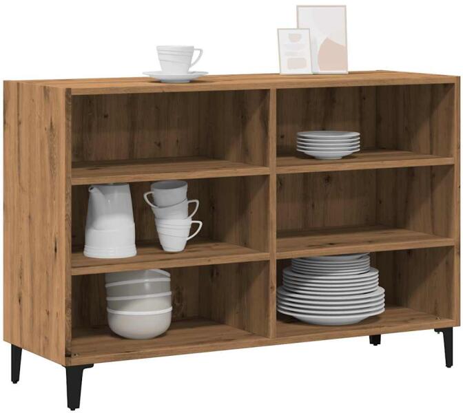 Ez a masszív tálalószekrény divatos, mégis praktikus kialakításával garantáltan szobája gyöngyszeme lesz. Tartós anyag: A szerelt fa kivételes minőségű, sima felületű, szilárd, stabil, és ellenáll a nedvességnek. A szerelt fából készült tárolószekrény nedves ruhával könnyen tisztítható. Bőséges tárolóhely: A tálaló praktikus helyet biztosít magazinjai, köny