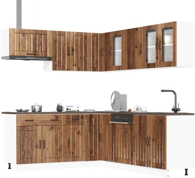 Ez az elegáns kialakítású, tizenegy részes konyhai szekrénygarnitúra optimalizálja konyhája terét, és bőséges tárolóhelyet biztosít személyes tárgyainak! Stabil és tartós anyag: A szerelt fa tartós és stabil anyag sima felülettel, amely ellenáll a nedvességnek, a vetemedésnek és a hasadásnak, így megbízható választás különféle célokhoz. Bőséges tárolóhely: